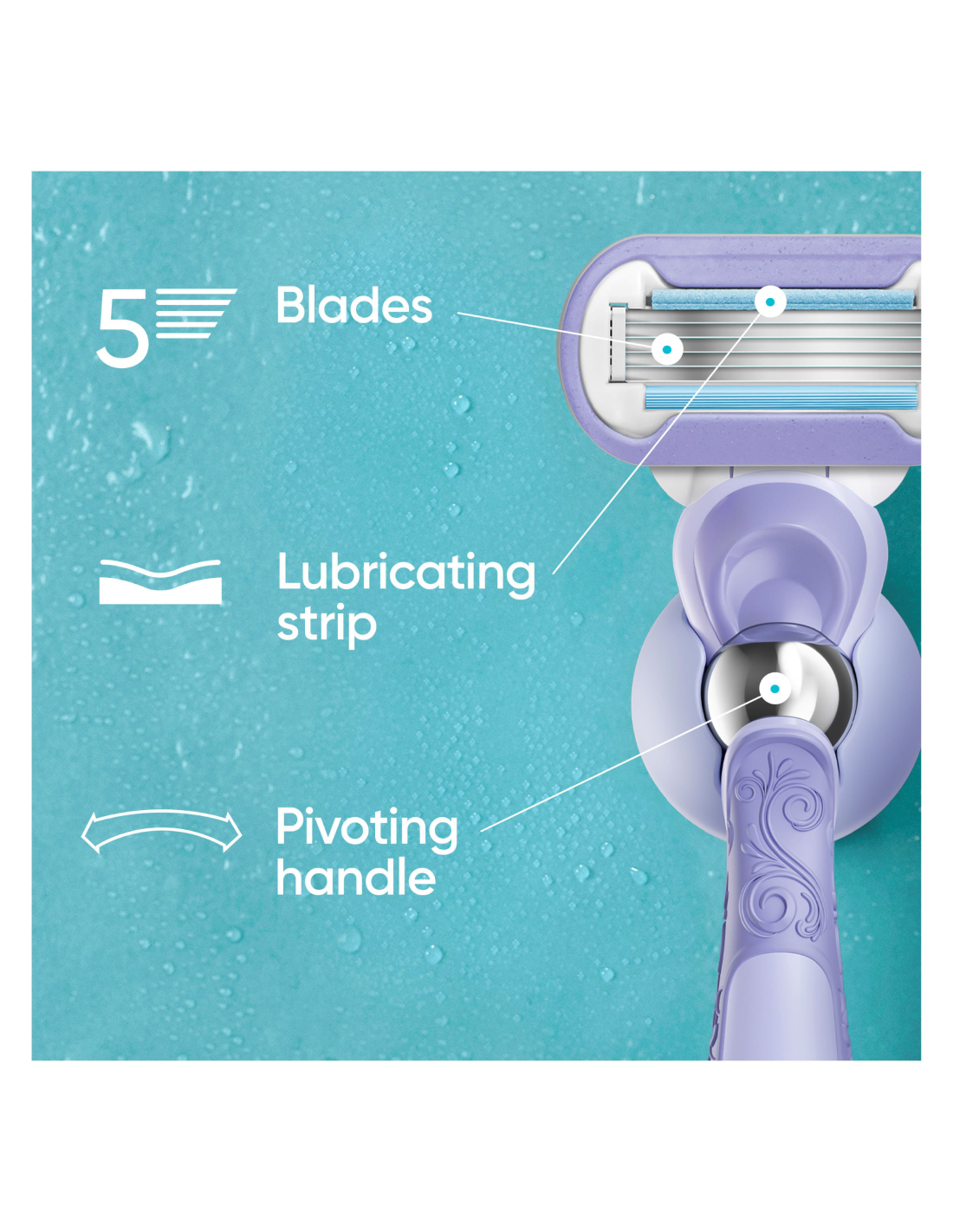 Venus naiste raseerimisterad on valmistatud naise keha silmas pidades. Venus Deluxe Smooth Swirl naiste raseerija tagab sileda naha, mis püsib. Raseerija varupeadel on siledamaks raseerimiseks 5 tera. Raseerimisterad lõikavad karvu nahale lähemal, et sile tulemus püsiks kauem. Veega aktiveeruv niiskuseriba tera ümber aitab kaitsta kriimustuste ja sisselõigete eest. Kõik Venuse varuterad sobivad kõigi Venuse raseerija käepidemetega (v.a Simply Venus ja Venus Pubic Hair and skin).