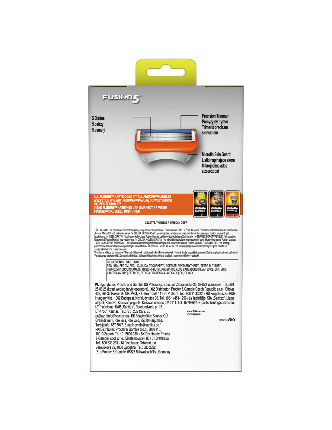Meeste raseerijal Gillette Fusion5 on 5 väikese hõõrdetakistusega tera, et raseerimine oleks vaid vaevu tuntav. Tagaküljel olev täppistrimmer on abiks raskesti ligipääsetavates kohtades ja habeme/vuntside kujundamisel. Kui raseerimistulemus ei ole enam optimaalne, muutub niisutusriba tuhmiks. Raseerija ühe varuteraga saab raseerida kuni kuu aega. Meeste raseerijale Fusion5 sobivad kõik Fusion5 varuterad. Gillette raseerijad Fusion5, endise nimega Fusion.