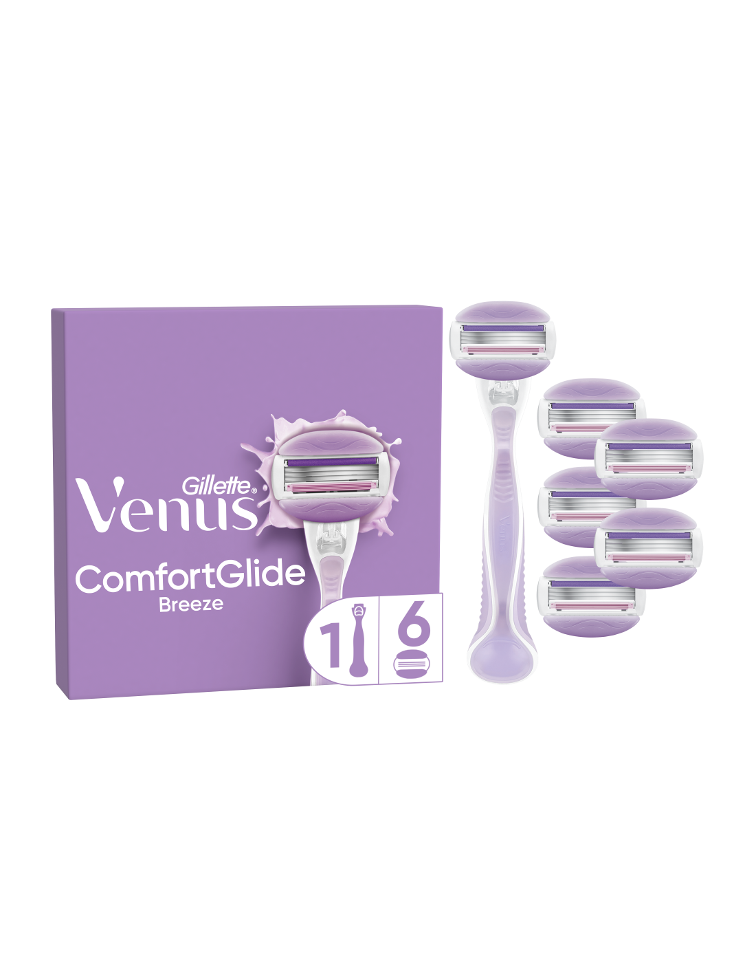 Hellitage oma nahka Venus ComfortGlide Breeze’i naiste raseerija teradega. 3 kontuure järgivat tera ja lisatud seebiribad, millest eraldub luksuslikku freesialõhnalist kehavõiet, tagavad uskumatu libisevuse, mugavuse ja unustamatu raseerimiskogemuse.