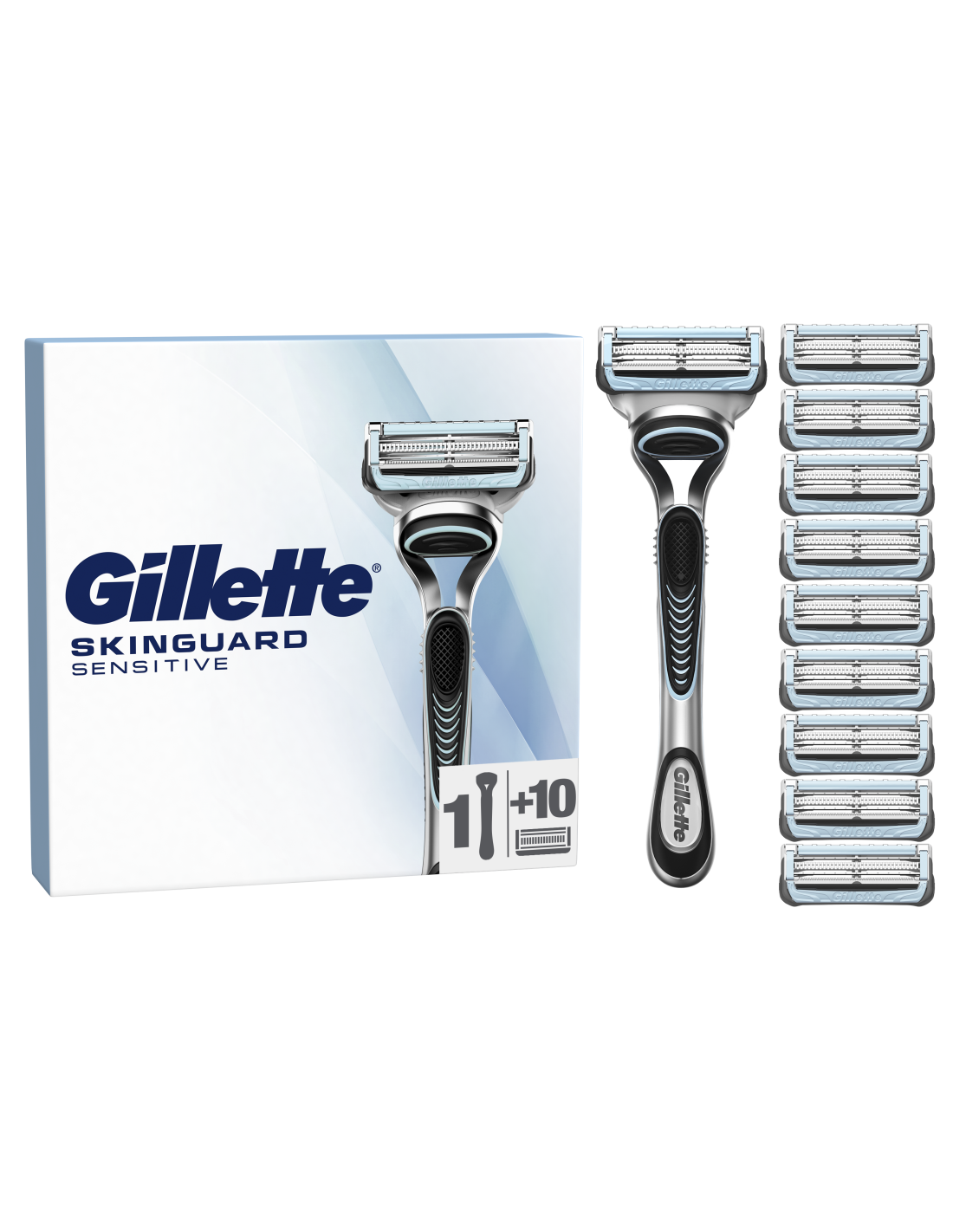 Gillette SkinGuard raseerija on loodud spetsiaalselt tundlikule nahale. SkinGuard raseerijal on kaks teravat, optimaalse vahega tera, mis vähendavad karvade tõmbamist ja sikutamist. Erinevalt enamikust raseerijatest, mis lõikavad karvad naha all, paigutab SkinGuardi revolutsiooniline „kaitse“ tehnoloogia terad õrnalt nii, et need lõikavad karvu naha tasandil, aidates ennetada sissekasvanud karvu ja raseerimisest tingitud ärritust. See spetsiaalne tehnoloogia on kliiniliselt tõestatud sobivana tundliku nahaga kasutajatele, pakkudes puhast ja mugavat raseerimist. Gillette SkinGuard tagab täiusliku tasakaalu nahalähedase tulemuse ja mugavuse vahel, aidates samas kaitsta raseerimisest tingitud ärrituse eest. Niisutav koostis koos aaloega on paigutatud nii enne kui ka pärast terasid, et pakkuda maksimaalset mugavust igal tõmbel. Raseerija ergonoomiline ja mugavalt käes istuv käepide võimaldab täpset kontrolli raseerimisel. Lisaks võimaldab raseerija tagaosas olev täppistera kujundada kontuurid täiuslikult ja saavutada viimistletud, hoolitsetud välimus.