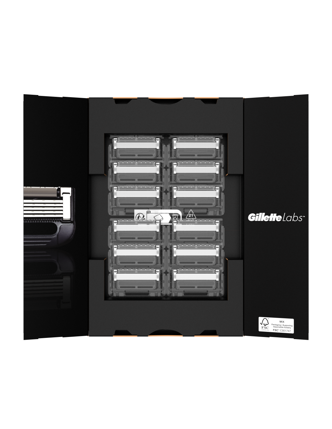 Gillette Labs universaalset varuterade kassetti saab kasutada kõigi GilletteLabsi raseerijatega, sealhulgas GilletteLabsi koorimisriba ja GilletteLabsi soojendusega raseerijaga. Uuenduslikul raseerija varukassetil on viis Gillette'i parimat tera ja keskel ava, kuhu saab kerge klõpsuga paigaldada soojendusriba ja koorimisriba. Universaalne varukassett muudab terade vahetuse lihtsaks, olenemata sellest, millist GilletteLabsi raseerijat eelistad, ja tagab Gillette'i parima raseerimistulemuse.