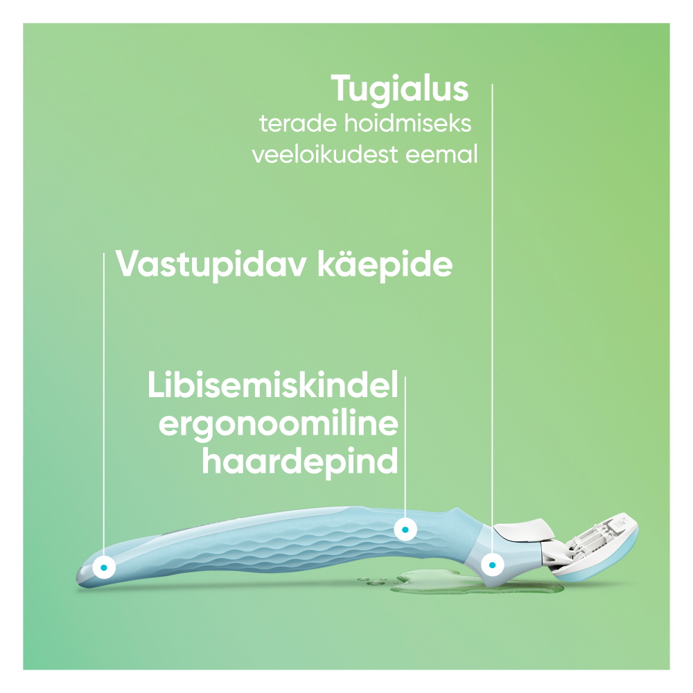 - VASTUPIDAV KÄEPIDE, LIBISEMISKINDEL HAAREPIND: hoia käepide alles ja kasuta seda mistahes Venuse raseerija varuteraga; kaasasolev dušihoidik hoiab terad raseerimiste vahel puhta ja kuivana.