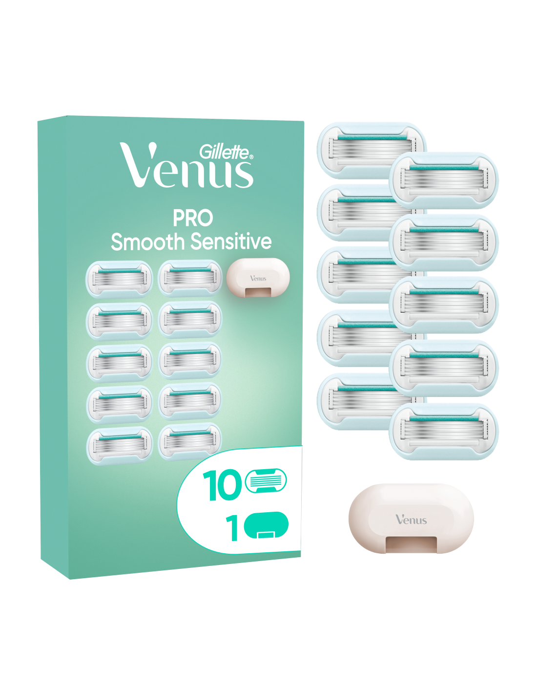 Kas soovid anda oma tundlikule nahale hellitava sileduse, mida see väärib? Tutvu Gillette Venus Pro Smooth Sensitive’i naiste raseerimisteradega. Raseerimisterad on valmistatud spetsiaalselt ka kõige tundlikuma nahaga naistele ja tagavad kauakestva sileda raseerimistulemuse kuni 30 päevaks. Meie SkinCushioni määrderiba (ja veidikese aaloega SkinElixir) aitab kaitsta nahka ja vähendab raseerimisjärgset ärritust kuni 0%-ni. Kas soovid paremat kontrolli? Meil on teie jaoks kõik olemas: meie vastupidavale ja ergonoomilisele metallist käepidemele on suurema täpsuse tagamiseks lisatud raskust. Korduskasutatav käepide ühildub ka kõigi Venuse raseerimisterade täitekassettidega. Kaasasolev dušihoidik aitab terad hoida raseerimiskordade vahel puhta ja kuivana. Raseerimiskogemus, mis võtab arvesse sinu nahka. Hangi Venus Pro Smooth Sensitive. Kas otsid veelgi rohkem viise, kuidas oma naha eest hoolitseda nii, nagu soovid? Olenemata sellest, mida soovid trimmida, raseerida, vormida või stiliseerida, on Gillette Venuse tooted valmistatud sinu keha ja kehakarvasid silmas pidades. Tutvu tootevalikuga juba täna.