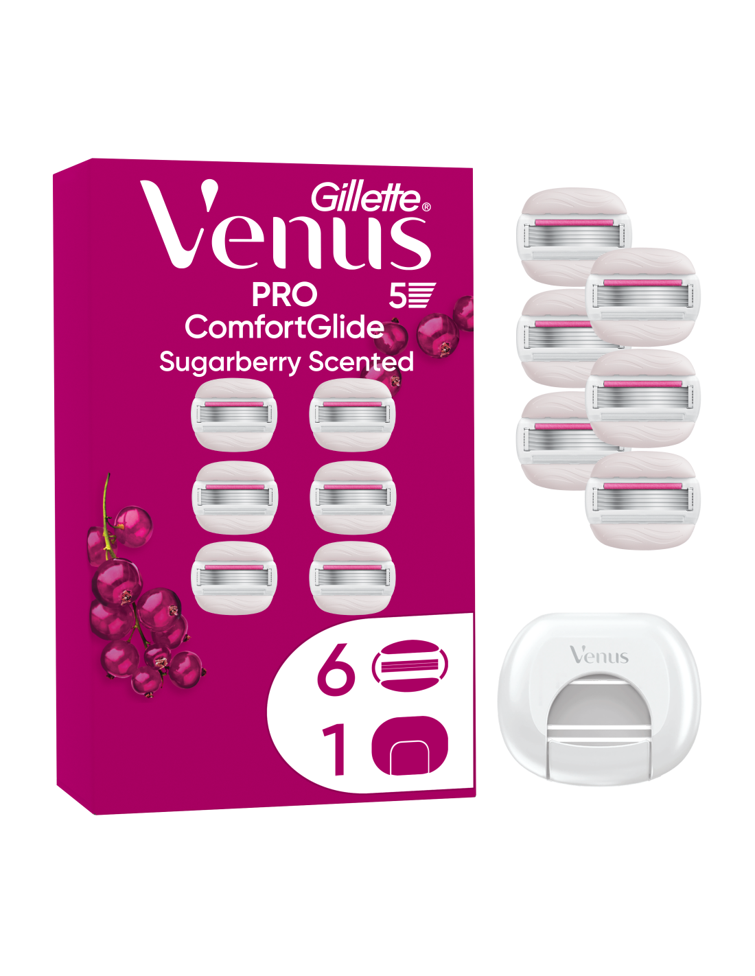 Kuiva naha eest hoolitsemiseks ei sobi mistahes vana raseerimistera. Hoolitse oma naha eest naistele mõeldud Gillette Venus Pro ComfortGlide’i raseerimisteradega. Spetsiaalselt isegi kõige kuivema naha hooldamiseks loodud Venus Pro ComfortGlide’i raseerimisterad on dermatoloogiliselt heaks kiidetud, seega saad muretult ja püsivalt sileda naha. Tseltiselõhnaga SkinCushioni määrderiba aitab kaitsta nahka raseerimisärrituse eest. 5 teraga raseerimispea libiseb üle naha, aidates samal ajal kaitsta nahka raseerimisjärgse kuivuse eest. Kas soovid paremat kontrolli? Meil on teie jaoks kõik olemas: meie vastupidavale ja ergonoomilisele metallist käepidemele on suurema täpsuse tagamiseks lisatud raskust. Korduskasutatav käepide ühildub ka kõigi Venuse raseerijate täitekassettidega. Kaasasolev dušihoidik aitab terad hoida raseerimiskordade vahel puhta ja kuivana. Raseerimiskogemus, mis võtab arvesse sinu kuiva nahka. Hangi Venus Pro ComfortGlide. Kas otsid veelgi rohkem viise, kuidas oma naha eest hoolitseda nii, nagu soovid? Olenemata sellest, mida soovid trimmida, raseerida, vormida või stiliseerida, on Gillette Venuse tooted valmistatud sinu keha ja kehakarvasid silmas pidades. Tutvu tootevalikuga juba täna.