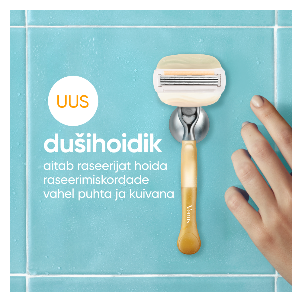 Kuivale nahale ei sobi mis tahes suvaline raseerija. Paku oma nahale hoolt ja armastust tootega Gillette Venus Comfort Glow Raseerija naistele. Spetsiaalselt isegi kõige kuivema naha hooldamiseks loodud Gillette Venus Comfort Glow Raseerija on saanud dermatoloogide heakskiidu, seega saad muretult ja püsivalt sileda naha. SkinCushioni määrderiba aitab kaitsta nahka raseerimisärrituse eest. Seebitab ja raseerib ühe tõmbega tänu Venuse niisutusribadele, mis sisaldavad veidike argaaniaõli. 5 teraga raseerimispea libiseb üle naha, aidates samal ajal kaitsta nahka raseerimisjärgse kuivuse eest. Kas soovid paremat juhitavust? Siin see on: Vastupidavale ergonoomilisele metallkäepidemele on suurema täpsuse tagamiseks lisatud raskust. Korduskasutatav käepide ühildub ka kõigi Venuse raseerijate varuterakassettidega. Kaasasolev dušihoidik aitab hoida raseerija raseerimiskordade vahel puhta ja kuivana. Raseerimiskogemus, mis võtab arvesse sinu kuiva nahka. Hangi Gillette Venus Comfort Glow veidikese Argaaniaõliga. Kas otsid veelgi rohkem viise, kuidas oma naha eest hoolitseda? Olenemata sellest, mida soovid trimmida, raseerida, vormida või stiliseerida, on Gillette Venuse tooted valmistatud sinu keha ja kehakarvasid silmas pidades. Tutvu tootevalikuga juba täna.