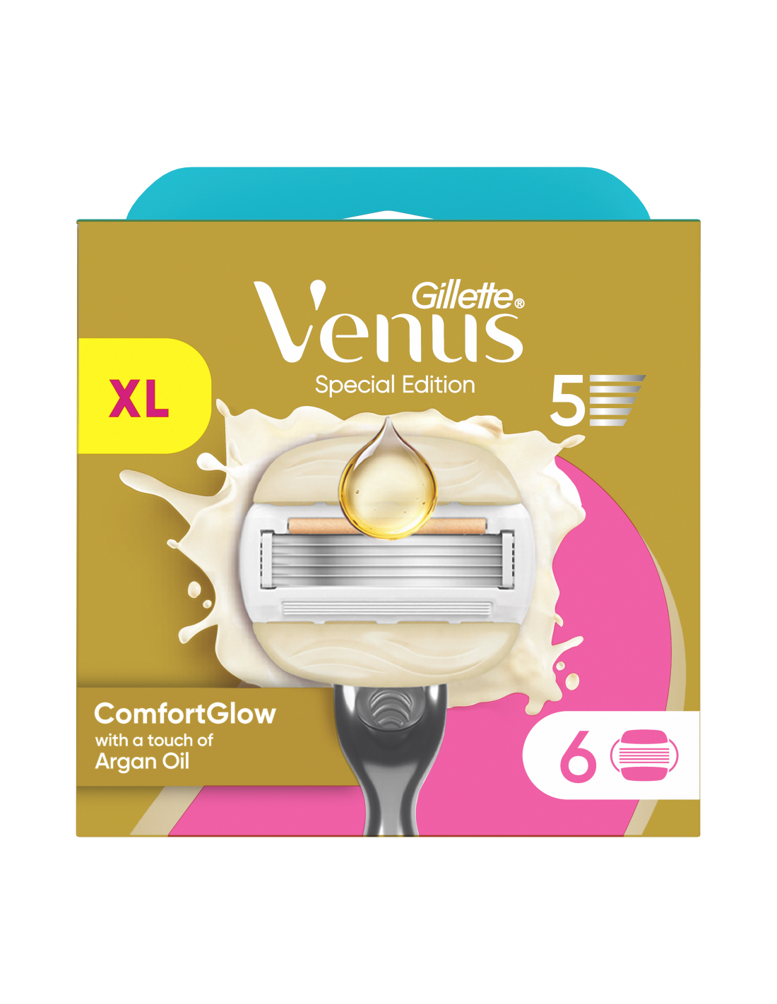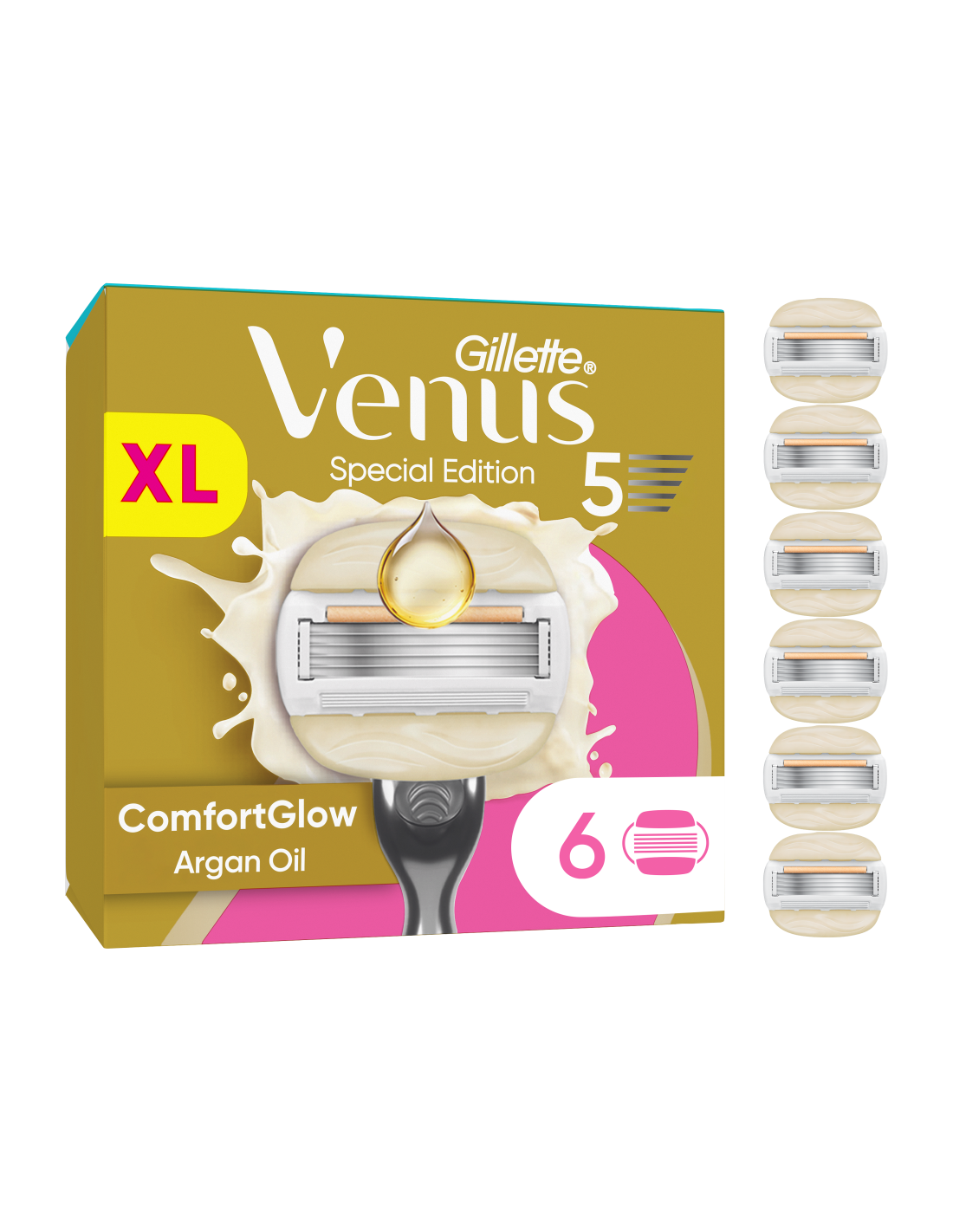 - SILE JA PEHME: Gillette Venus Comfort Glow veidikese Argaaniaõliga Naiste Raseerija muudab naha ühe tõmbega silmnähtavalt siledaks ja pehmeks ning on spetsiaalselt loodud kuivale nahale.