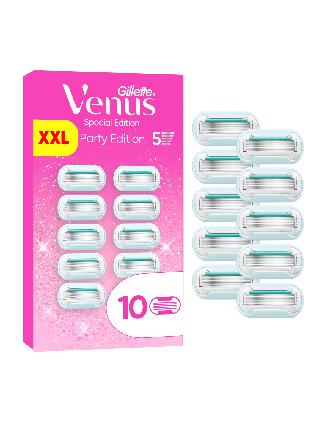 Kas soovid hellitada oma tundlikku nahka siledusega, mida see väärib? Siin on Gillette Venus Party Edition Naiste Terad. Terad on valmistatud spetsiaalselt ka kõige tundlikuma nahaga naistele, et pakkuda kauakestvat siledat raseerimistulemust kuni 30 päevaks. Meie SkinCushioni määrderiba (ja veidikese aaloega SkinElixir) aitab kaitsta nahka ja vähendab raseerimisjärgset ärritust kuni 0%-ni. Kas soovid paremat juhitavust? Siin see on: Vastupidavale ergonoomilisele käepidemele on suurema täpsuse tagamiseks lisatud raskust. Korduskasutatav käepide ühildub ka kõigi Venuse raseerimisterade täitekassettidega. Kaasasolev dušihoidik aitab hoida Terad raseerimiskordade vahel puhta ja kuivana. Raseerimiskogemus, mis võtab arvesse sinu nahka. Hangi Gillette Venus Party Edition. Kas otsid veelgi rohkem viise, kuidas oma naha eest hoolitseda? Olenemata sellest, mida soovid trimmida, raseerida, vormida või stiliseerida, on Gillette Venuse tooted valmistatud sinu keha ja kehakarvasid silmas pidades. Tutvu tootevalikuga juba täna.