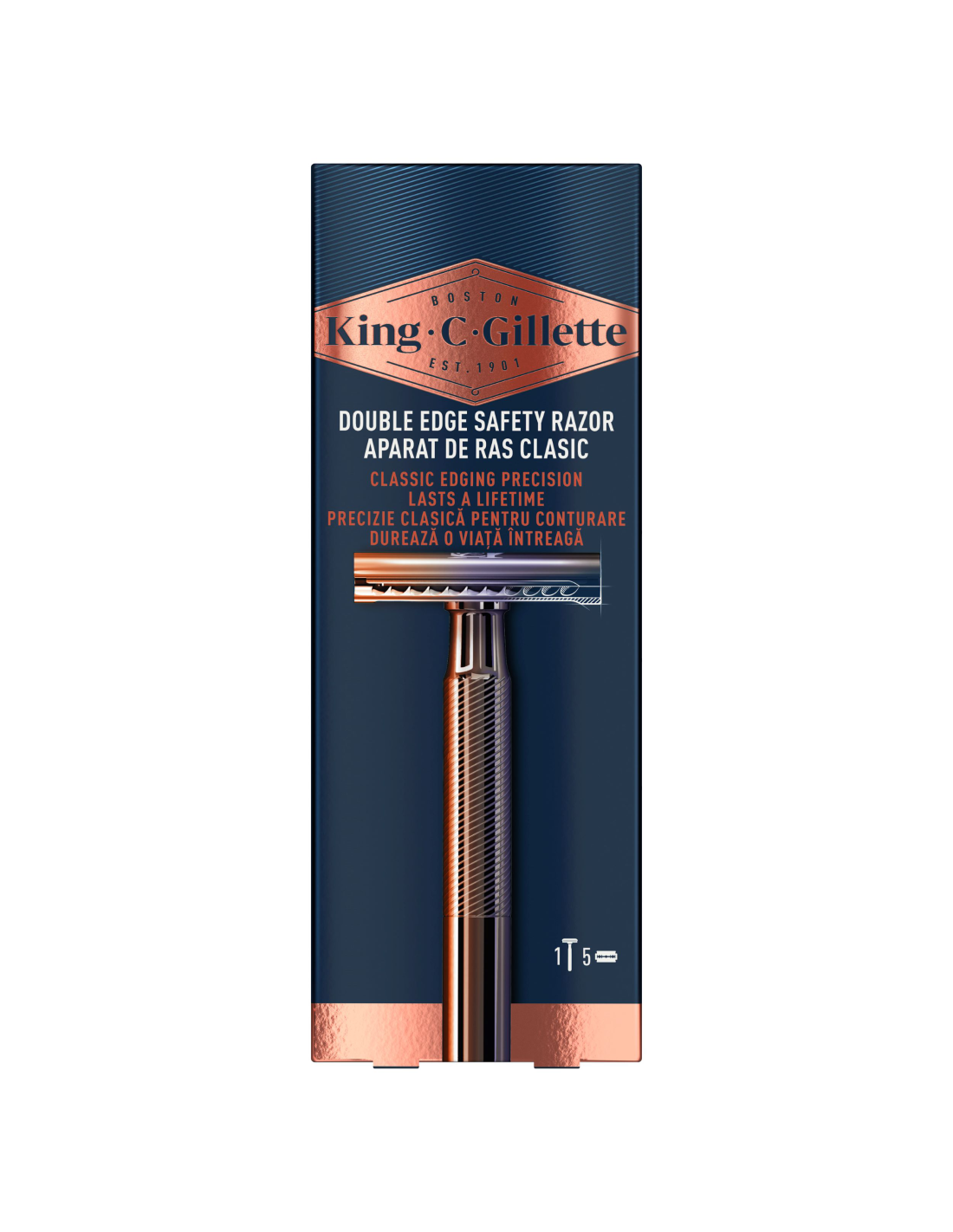 Rohkem kui saja aasta jooksul täiustunud asjatundlikkuse ja uuenduslikkuse tulemusel on sündinud ainus sari, mis kannab meie ettevõtte asutaja King C. Gillette’i nime. Raseerija omapärane disain on inspiratsiooni saanud Gillette’ile omasest üliheast lõiketäpsusest. Plaatinakattega kaheteraline tera töötab ülitäpselt ja sobib seega ideaalselt põskhabeme ning selgete habemepiiride lõikamiseks. Gillette’i suletud kammidega disain tagab hea juhitavuse ning kroomitud kvaliteetkäepide annab vastupidavuse.