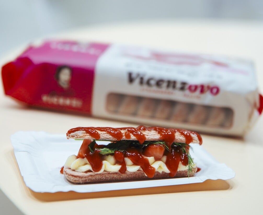 Lõika Vicenzy Ladyfingers küpsised pooleks. Nirista peale maasikakastet, lisa mascarpone mousse’i.