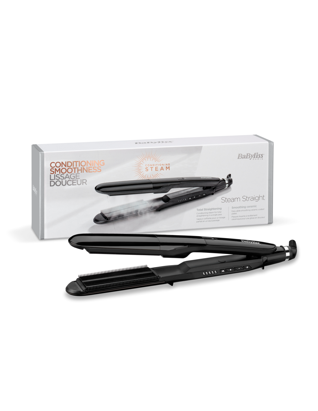 See suure jõudlusega juuksesirgendaja eraldab hooldavat auru, mis niisutab ja kaitseb juukseid sirgendamise ajal, tagades vaevata siledad, säravad ja kauakestvad tulemused. Laiad keraamilise kattega plaadid ja eemaldatavad silumiskammid tagavad täieliku sileduse vaid ühe tõmbega. 5 digitaalset kuumusastet vahemikus 150 °C - 230 °C ja kuumutussüsteem Advanced Ceramics™ säilitavad püsiva kuumuse igal juuksesalgul, et tagada salongikvaliteediga tulemused.
