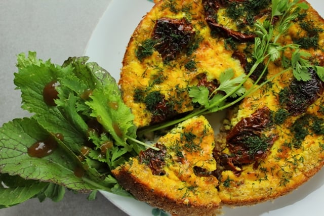 Küpseta umbes 20 minutit ülevalt ja alt küpsetaval režiimil. Jälgi piruka värvust, kui see hakkab liigselt pruunistuma, muuda režiimi pöördõhu peale või keera kuumust oluliselt väiksemaks. Serveeri ohtra rohelisega salati ja maitserohelisega ning mõne kerge naturaalse mahlajoogiga.