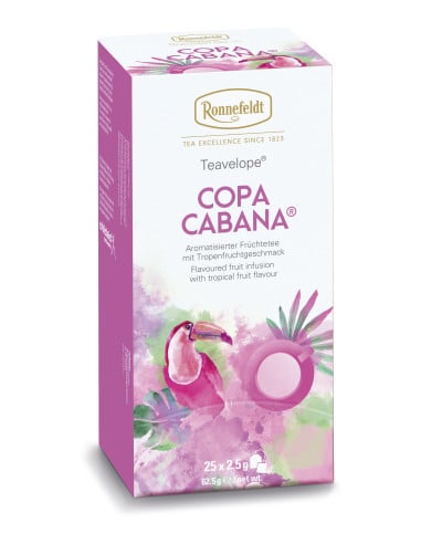 Rio de Janeiro kuulsa ranna Copacabana järgi nime saanud erksavärviline ja värskendav troopiline puuviljatee. Tee on maitsestatud tõeliselt värvikireva eksootiliste puuviljade seguga, mille hulka kuuluvad maitsvad õunatükid, põldmurakalehed, lagritsajuur ja sigurijuur.