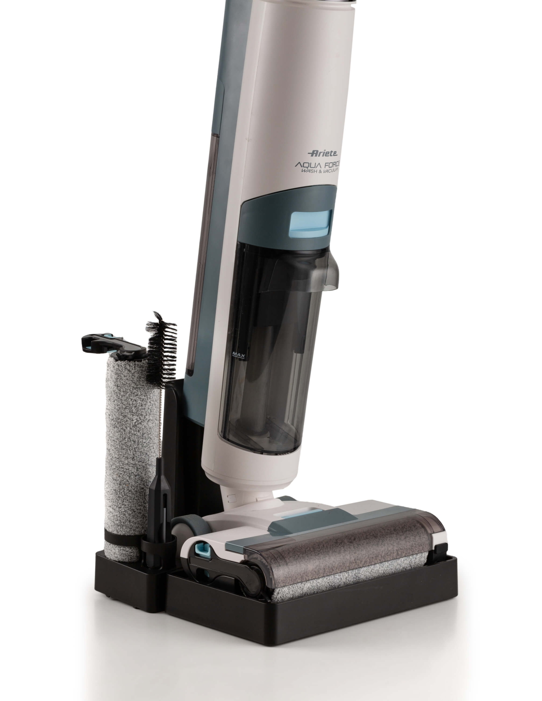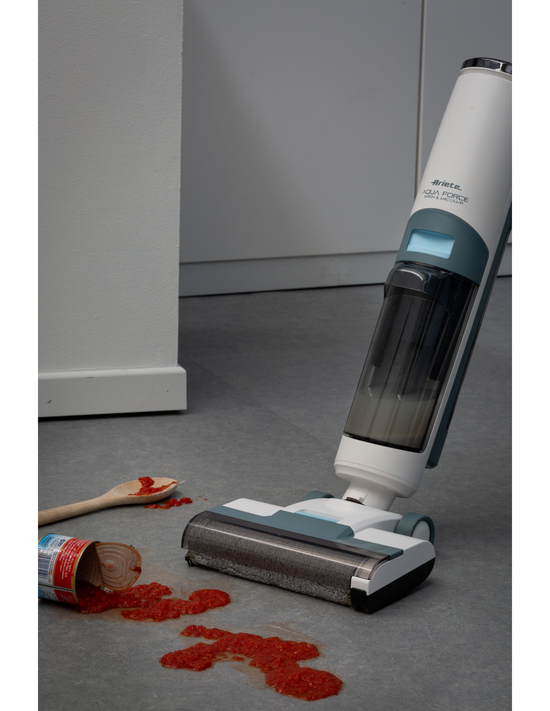 Aqua Force Wash & Vacuum ei ole lihtsalt juhtmevaba põrandapesur ja tolmuimeja – see on sinu igapäevane abiline kodu hooldamisel. Seade imeb ja peseb samaaegselt nii kuiva kui vedelat mustust kõikidelt kõvadelt põrandapindadelt: plaat, parkett, marmor, laminaat, kivipõrand jne.