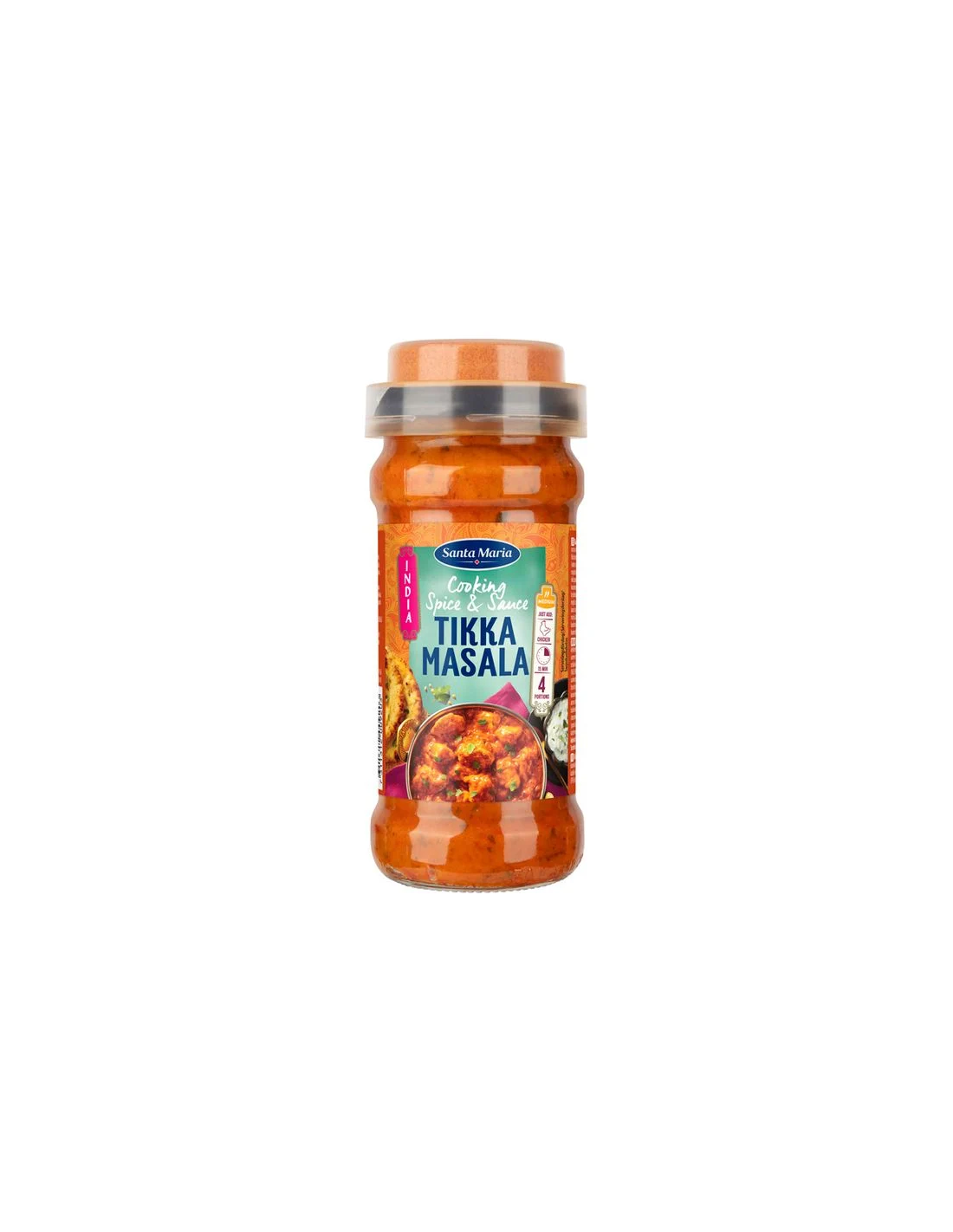 Kaste (97%)(Vesi, sibul (25%), KOOR (PIIM) (19%), rapsiõli, suhkur, tomatipasta, modifitseeritud maisitärklis, sool, kuivatatud sibul, happesuse regulaator (sidrunhape, piimhape), kurkum, suitsutatud paprika, ingveripüree, toiduvärv (paprikaekstrakt), küüslaugupüree, vürtsköömnepulber, koriandripulber, põld-lambaläätse leht, koriandrileht, vürtsköömen, koriander, paprika, maitsetugevdaja, nelk, mangopulber, küüslaugupulber, sibul, cassia kaneel, roheline kardemon, põld-lambalääts, ingver, must kardemon, tšillipulber, must sool, tähtaniis, muskaatpähkel, sidrunipulber, kaneel, must pipar, vürts, loorberilehed). Maitseainekorgi sisu (3.0%) (paprika, vürtsköömen, riisijahu, sool, koriandriseemned, dekstroos, kaneel, kardemon, kassia, lõhna- ja maitseaine, nelk, põld-lambalääts).