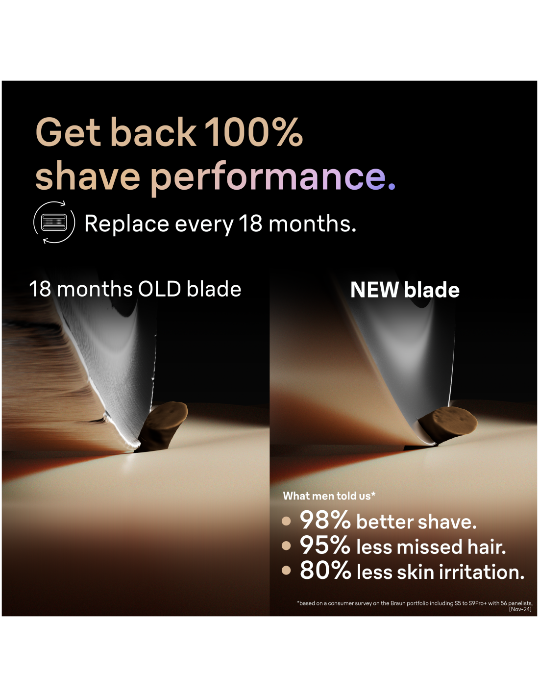 Taasta 100% raseerimisjõudlus: optimaalse raseerimistulemuse jaoks soovitame vahetada elektrilise raseerija raseerimispea iga 18 kuu järel.