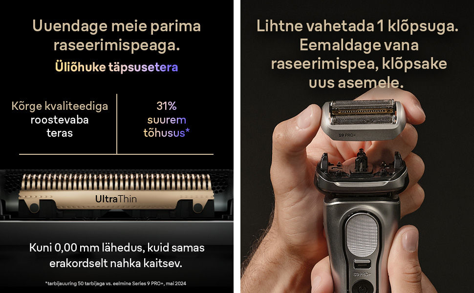 Maksimaalne nahakaitse: ultraõhukesed täppisterad võimaldavad raseerida tõhusamalt kui ükski varasem Series 9 elektriraseerija, tagades erakordselt õrna raseerimise.