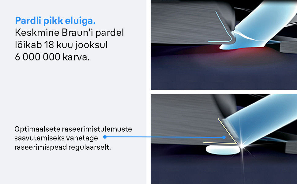 Taasta 100% raseerimisjõudlus: optimaalse raseerimistulemuse jaoks soovitame vahetada elektrilise raseerija raseerimispea iga 18 kuu järel.